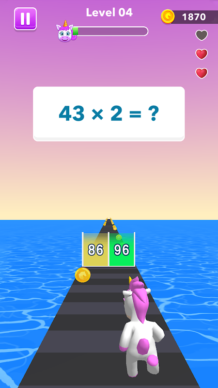 - 在数学跑酷游戏中解答数学问题或数学测验,并将您的独角兽送至正确答案。