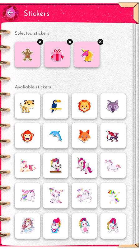 - 许多可爱的免费贴纸 - 找到与您的一天相配的贴纸并将其固定在您的条目上! 很多可爱的女孩贴纸!