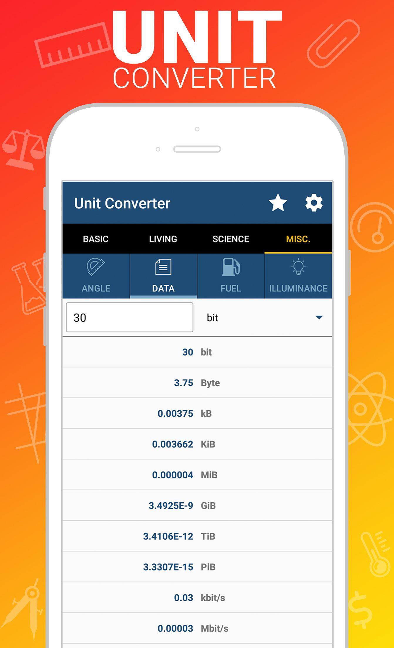 4. Misc. : angle, data, fuel efficiency, cooking, illuminance, radiation, prefix, binary, time zone, blood sugar, AWG