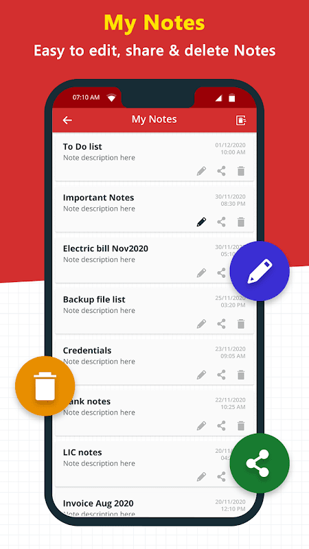 Here you can write notes with rich fancy text, and you can also make the notepad background colorful.
