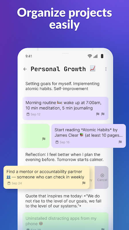 • 任务项目化管理:无论是工作、学习、个人目标、旅行还是兴趣,都能清晰规划。