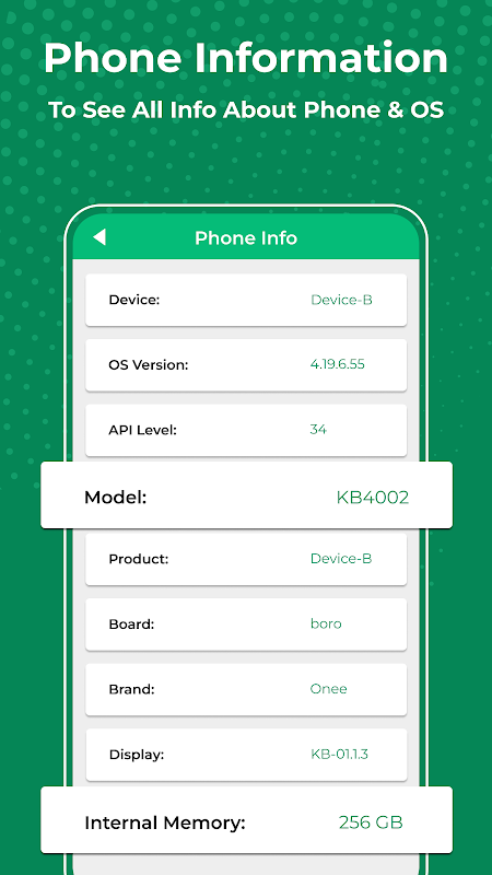 更新应用程序的手机信息功能允许用户确定有关他们正在使用的设备的信息,例如操作系统版本、API 级别、设备、型号、产品、版本等。