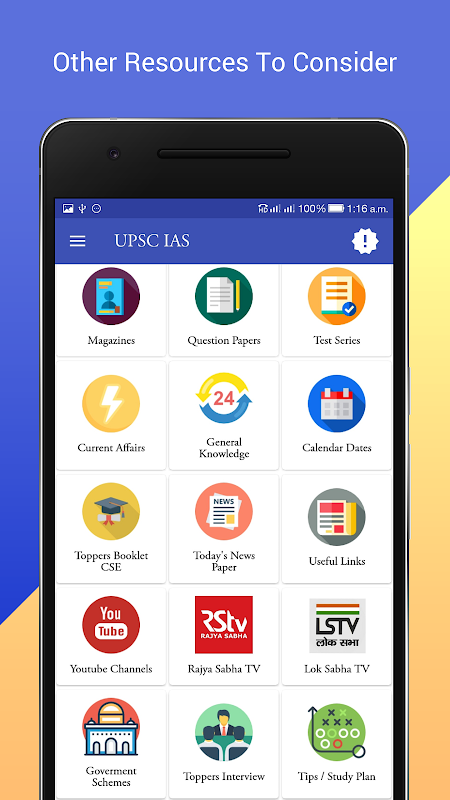IAS UPSC app is completely optimised to meet your UPSC / IAS / CSE / State Civil Services preliminary examination preparation needs.