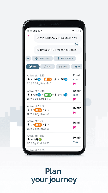 所有城市交通尽在一个应用程序中:汽车、踏板车、电动踏板车、共享自行车+公共交通和出租车!