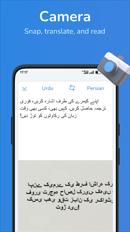 - 图像翻译:使用波斯语-乌尔都语翻译器捕获并翻译照片、标志和文档中的文本