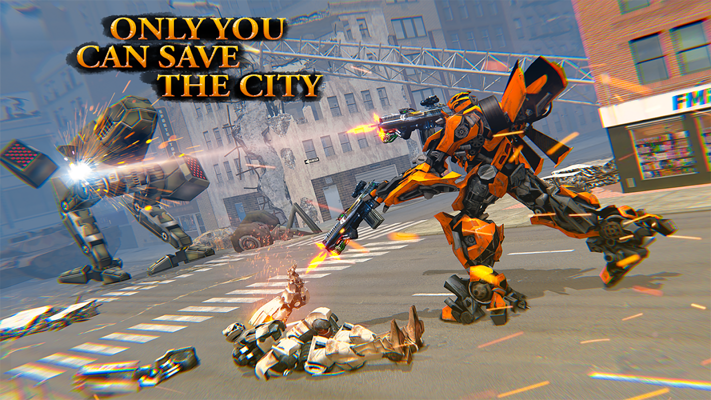 The game is full of war between robots in a futuristic city, where only the best army car transformation experts can survive. You have the option to transform robot car and become superhero warrior robot. US War Robot Transformation - Flying Horse Robot brings in a new era to the transformation games, especially robot fighting games. Now you have the option to fight with robot jump and robot unicorn attacks. Unlike other robot shooting games, you can use advanced military weapons and fight with your opponents. There are multiple challenging missions in each level to be completed. You can use real robots in the city battle and fight for justice and peace against evil forces.