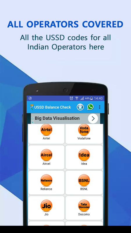 This magical app is a simple application to check all Mobile Prepaid/Postpaid Operators - A free app for all the shortcuts *(USSD codes)# at one place e.g. Offers, Balance Check, Customer care, 2G/3G/4G Data Balance and you can call customer care too without remembering any code or number.