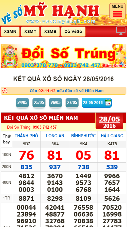 Trường thuật trực tiếp Kết quả xổ số ba miền.