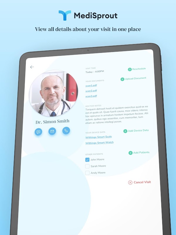 在舒适的家中或办公室与您的医生一起访问。