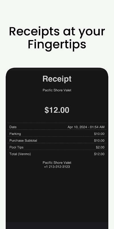 • 为朋友付款:立即将资金发送到拥有代客追踪器的家人、朋友和同事的电话号码,以支付代客费用。