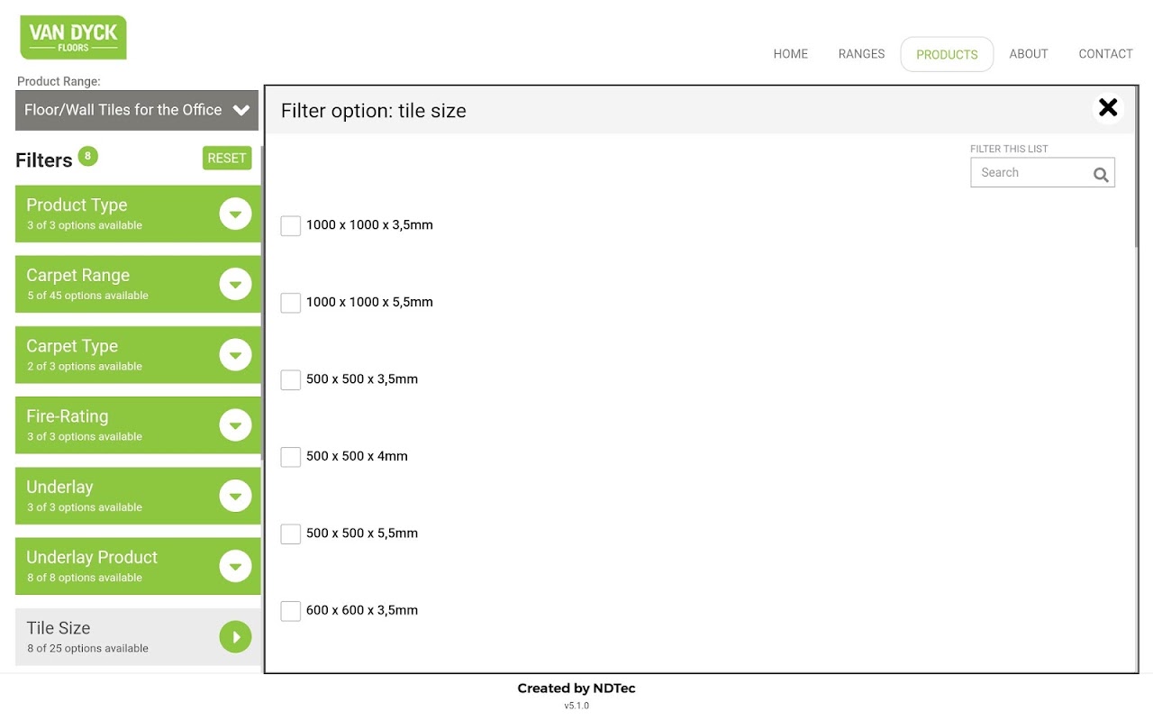 Architectural specification tool for Van Dyck Floors.