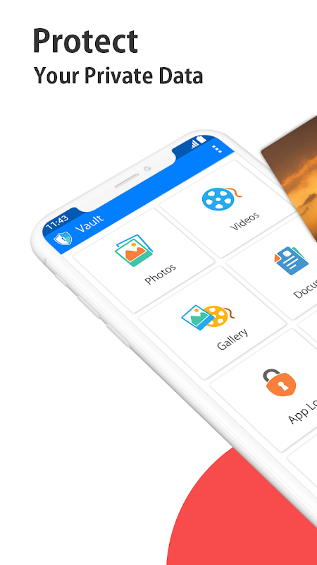 文件管理器,记事本,社会媒体,画廊,照片和视频锁。手机的安全性。