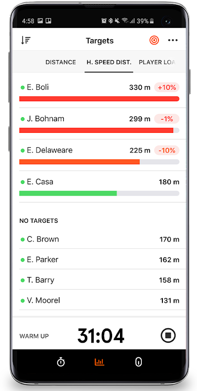 用户将能够通过蓝牙从小组运动员接收现场表演信息。 Vector App非常适合1对1训练或康复训练场景。它可以快速查看实时的运动员表现数据,而无需设置任何其他设备。