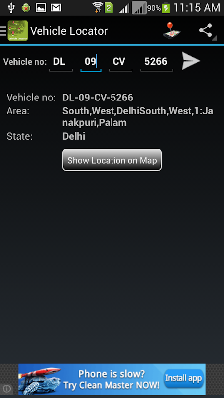 ★ Track any Vehicle Area location and view Location on Map from over all India. ★
