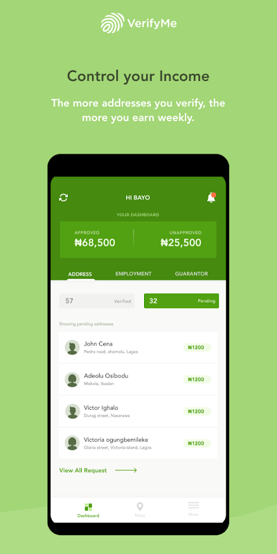 下载VerifyMe代理应用程序,并加入尼日利亚最大的身份验证网络。该应用程序使我们的最后一英里验证代理能够满足客户提出的了解您的客户(KYC)的要求。