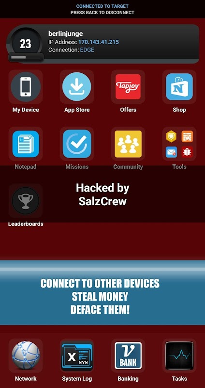 In vHackOS you need to browse the global network for other players, get access to their devices, transfer virtual money to your game account and built up your tools. But never forget about your defense! Keep in mind that there are alot of other players who will try to hack you.