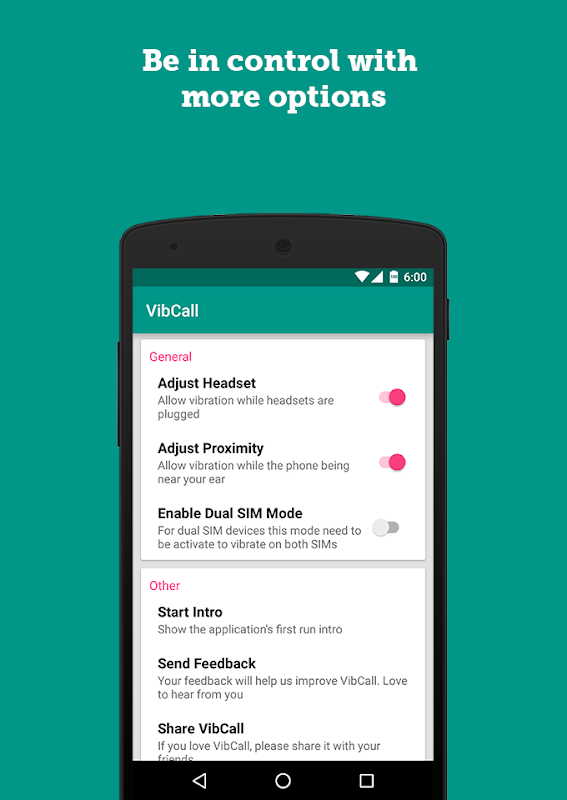 The features in VibCall might be implemented by default in some Android Devices like HTC and LG. But this application provides more control over these features: