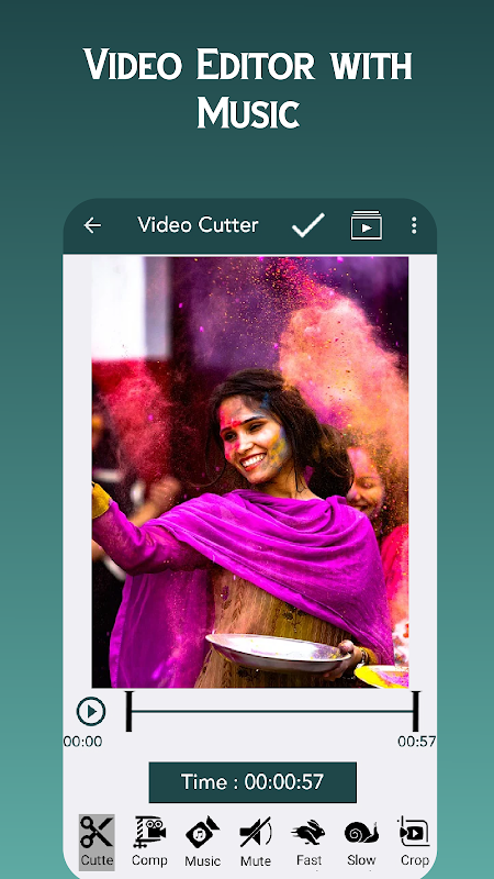 带有音乐的视频编辑器和压缩器可让您剪切、裁剪、合并您的视频。