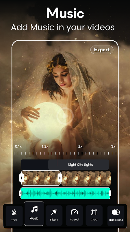 带音乐的 Video Maker 创建视频、滤镜、效果、幻灯片、修剪和毛刺