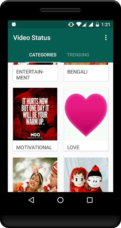 Whats Video Status for WhatsApp has all status of such as Love, Funny Motivational and much more. More than 10 thousands of status in one single app.