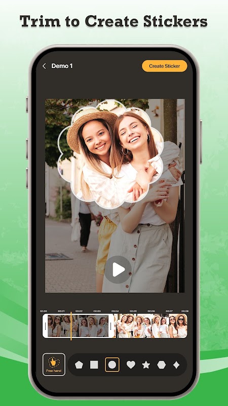 此外,制作视频贴纸非常简单,只需从设备的图库中选择一个视频,修剪您想要制作动画的特定部分,然后从应用程序中提供的不同动画形状样式中进行选择。使用这些形状样式创建您自己的贴纸,让您可以为每个动画贴纸添加独特的风格,并帮助您将最简单的视频变成引人入胜的创作。