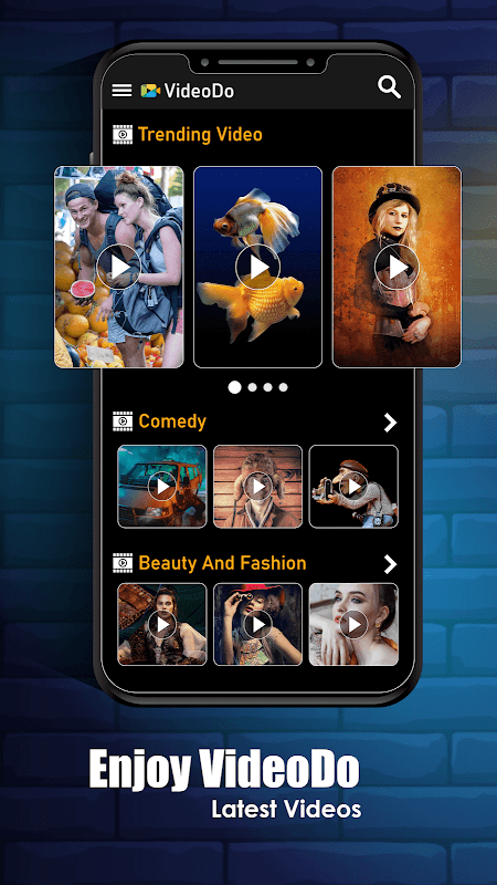 VideoDo app, provides different types of video collection.