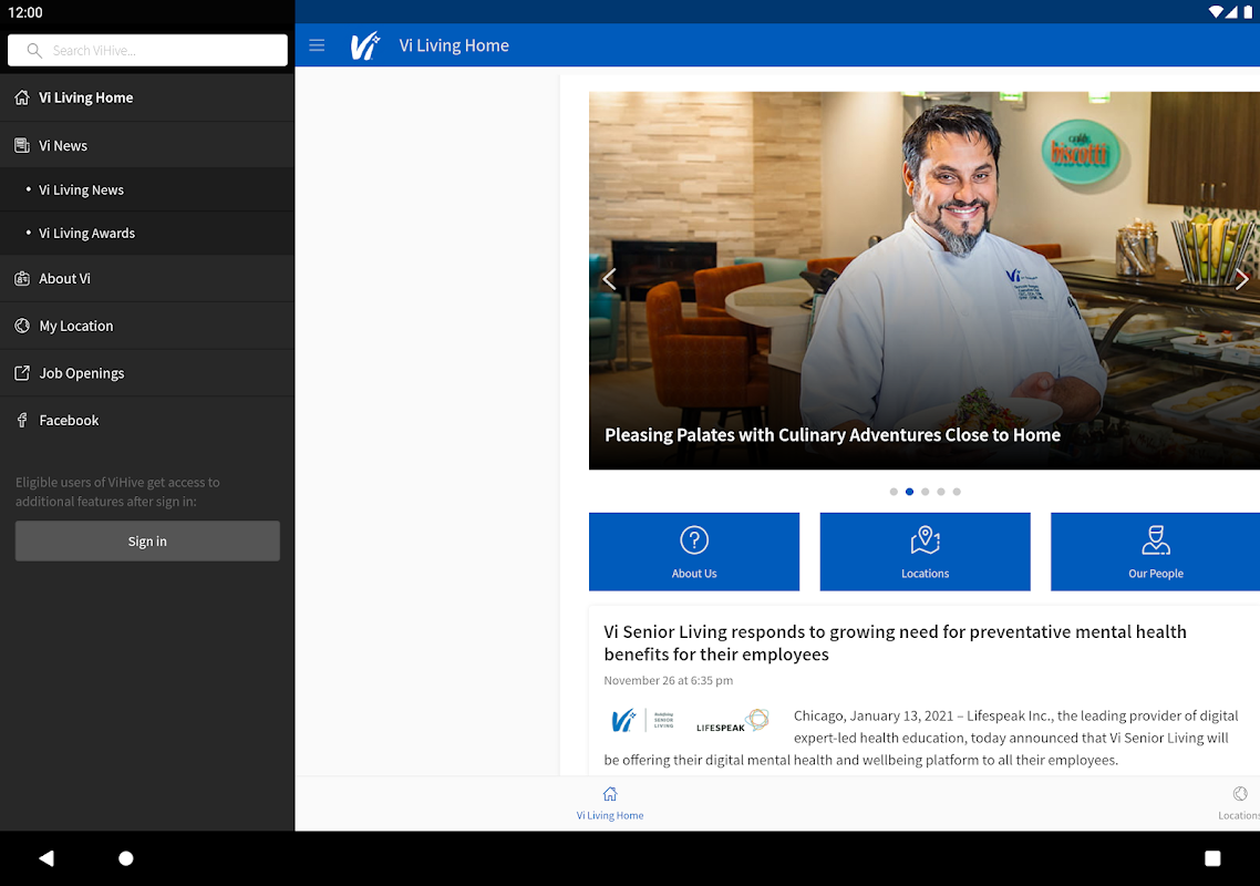 ViHive 应用程序包括有关公司的重要新闻和更新。