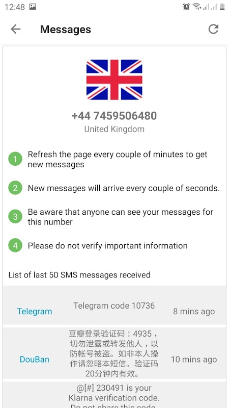 Many companies are beginning to demand a phone number to verify or activate accounts and to use their applications, luckily with our disposable and virtual service you can avoid providing personal information. We understand that privacy is important and our service allows you to keep your contact information private while gaining access to online SMS activated services from these various companies. We do not retain any message data longer than about a day and use a secure connection to serve our content.