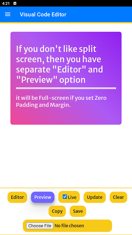 很方便 将此可视代码编辑器安装在 Android Phone 或 Tab 中,并在途中测试 HTML,CSS,JavaScript。