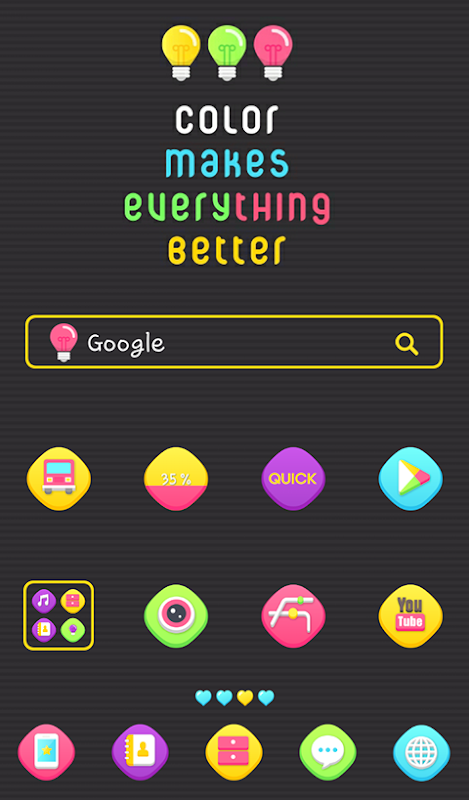 - DIY 테마 제작 지원! 배경화면, 위젯, 아이콘, 폴더, 독바, 어플서랍 등을 직접 제작 가능 (PC에서 사용해 주세요)