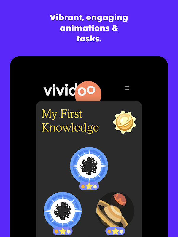 Spark curiosity while discovering the scientific world! Kids guide their customized character, Vee, through vibrant animations, interactive tasks, and captivating stories, collecting badges along the way to mark their progress. They learn STEM while teaching Vee about our universe.