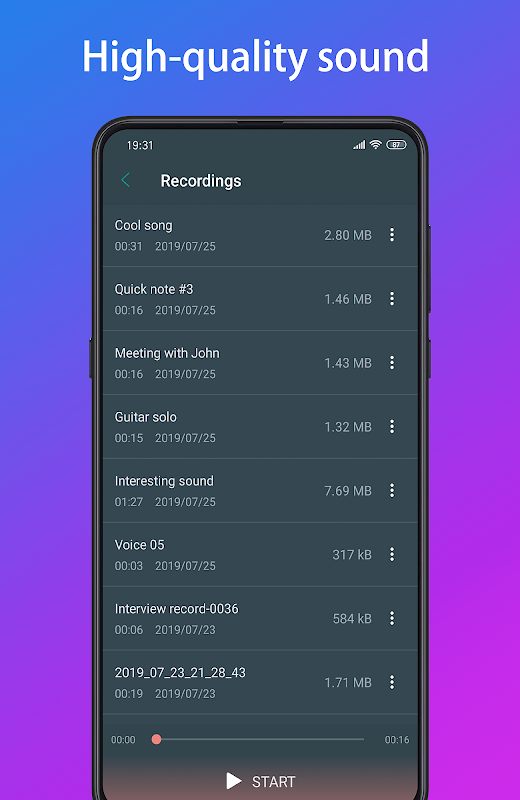 您可以使用它作为一个普通的录音机录制语音笔记和备忘录,歌曲,会议,演讲,讲座,音乐会)或其他任何东西。