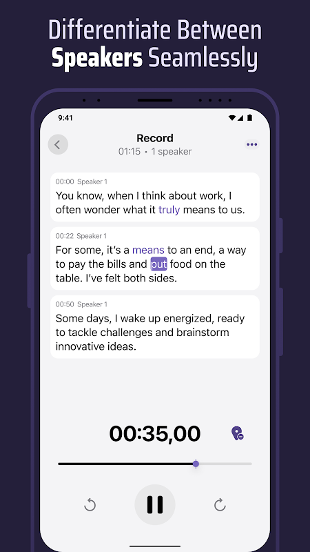 语音识别: 先进的 AI 确保高度精确的文字转换。