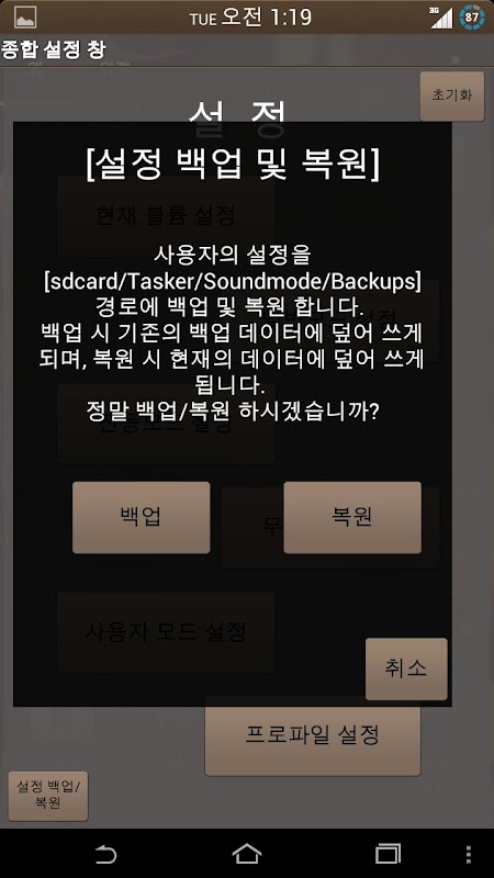 -자동모드로 위치에 따라 자동설정(설정한 wifi에 연결 되거나 연결이 종료 될때 자동으로 일반/진동/무음/사용자모드로 전환 되는 기능)