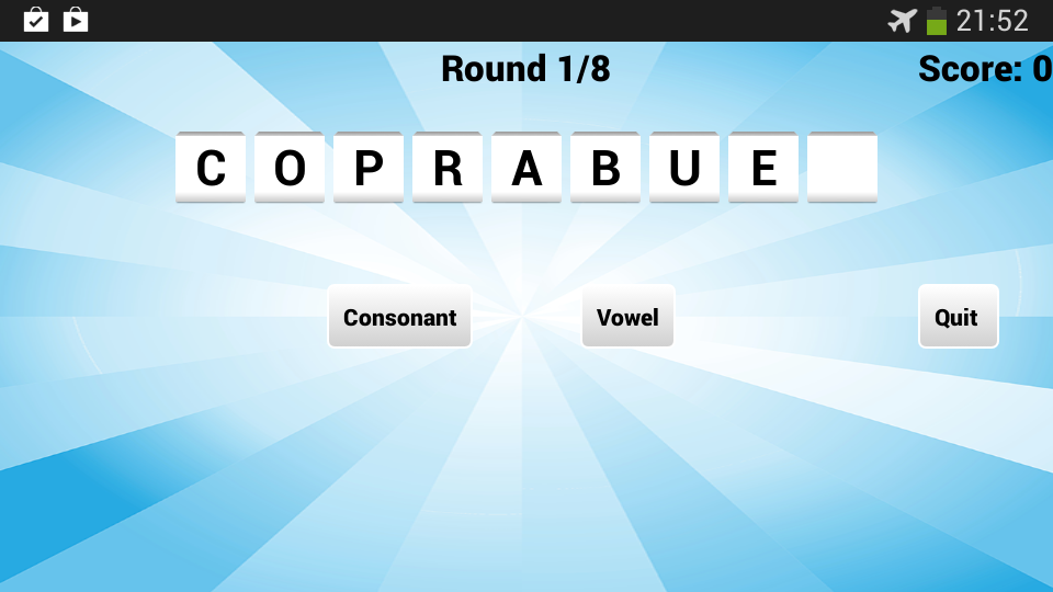 - 在30秒计时器结束之前,使用尽可能多的9个字母组成一个单词。