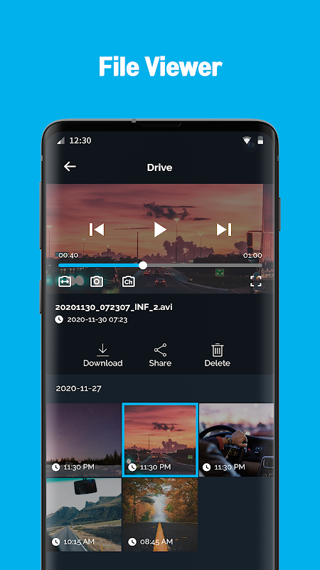 文件查看器部分中的许多文件列表是行车记录仪可以录制的视频类型的类别。