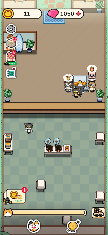 第 4 步:从一个小食品摊开始,逐渐发展成为一家大型餐厅,展示您卓越的管理技能,同时见证猫每天快乐地工作,为顾客提供更美味的食物。