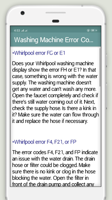All Washing Machine Error Code is an app that contains information about most common failure of washing machine. Repair of washing machine: error code & how to fix