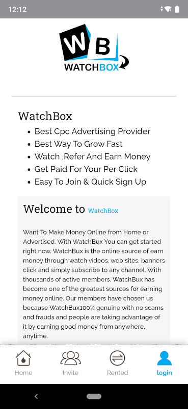 家庭或广告。有了 WatchBux,您现在就可以开始了。 WatchBux 是通过观看视频、网站、横幅点击并简单地订阅任何频道来赚钱的在线来源。 WatchBux 拥有数千名活跃会员,已成为在线赚钱的最大来源之一。我们的会员之所以选择我们,是因为 WatchBux100% 正品,没有诈骗和欺诈行为,人们可以利用它随时随地赚取好钱。