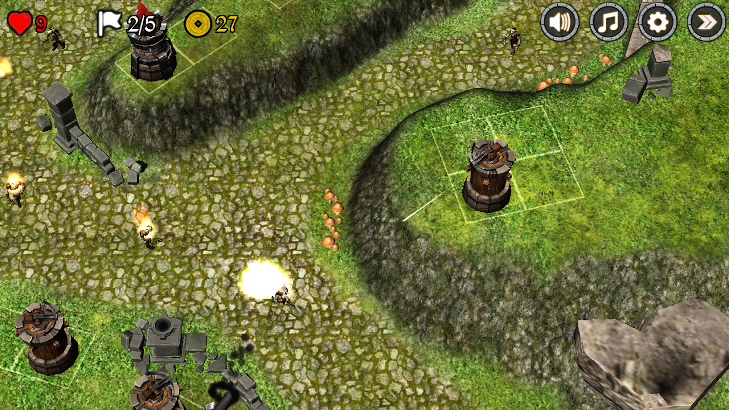 具有挑战性的塔防(TD)游戏,具有平衡的游戏进程。三个难度级别,适合从休闲到铁杆塔防策略游戏玩家的每个玩家。在最困难的难度下,您必须改进策略,巧妙地放置塔楼,并用有限的资源应对不屈的敌人。
