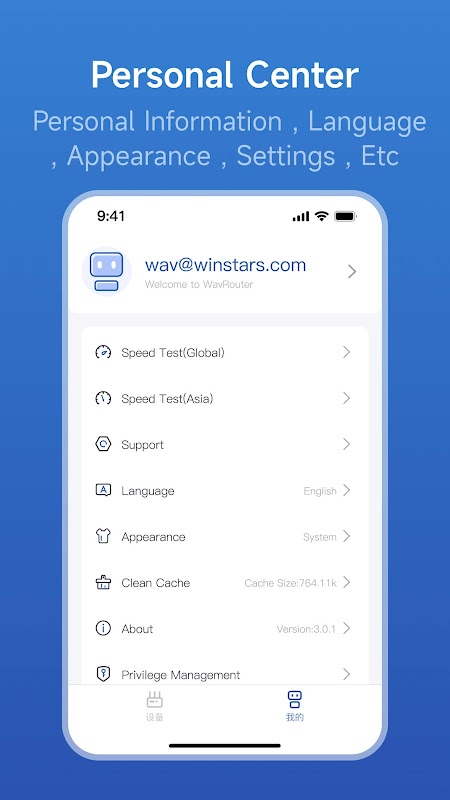 WavRouter Wi-Fi 应用程序使您可以轻松直观地设置和管理您的 Wi-Fi 系统。 您可以快速安装和配置您的 WavRouter Wi-Fi 网络——只需将您的移动设备连接到默认的 WavRouter Wi-Fi 网络。