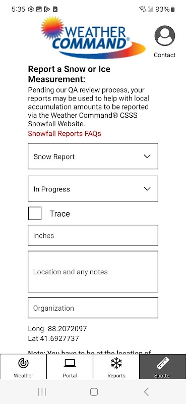 • 用户能够提交正在进行的冰雪事件和风暴总数。