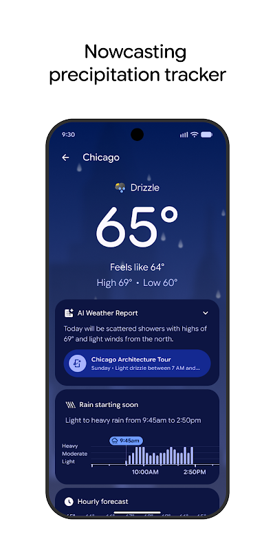 通过 Pixel 专属天气应用获取最新天气预报。您还可以: