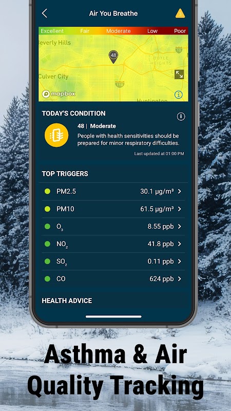 • 空气质量专区,提供空气质量信息,包括您周围的常见过敏原