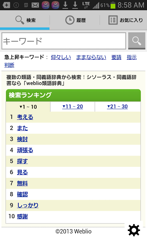 搜寻一旦词库和词典词库,词库Weblio是同义词的搜索应用程序。