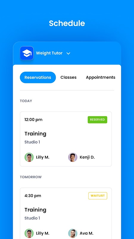 体重导师会员的课程预订和帐户管理