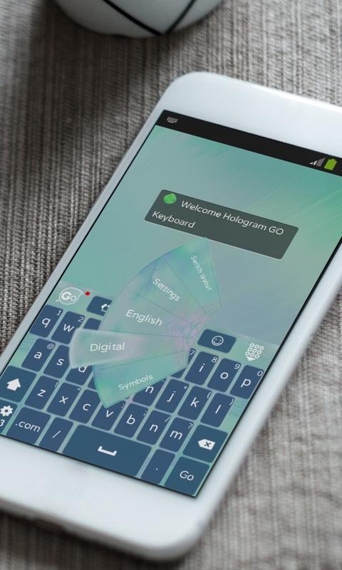 “欢迎全息图”主题将指导您免费下载主键盘应用程序,如果它尚未安装在您的设备上。