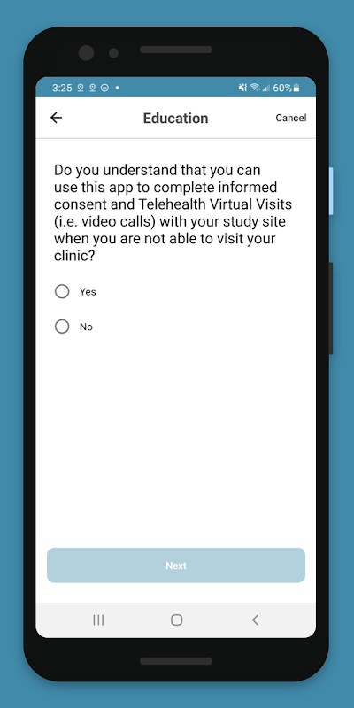 - 患者入职培训 – 完整的研究应用程序注册和教育