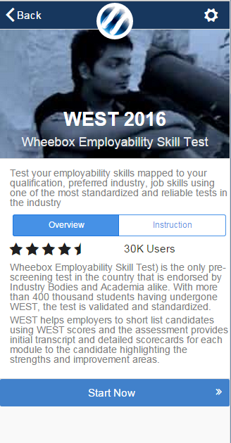 WEST (Wheebox Employability Skill Test) is the only pre- screening test in the country that is endorsed by Industry Bodies and Academia alike. With more than 600 thousand students having undergone WEST, the test is validated and standardized. WEST helps employers to short list candidates using WEST scores and the assessment provides initial transcript and detailed scorecards for each module to the candidate highlighting the strengths and improvement areas.