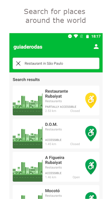 使用Wheelguide评估场地的可达性并搜索已评级的场所。